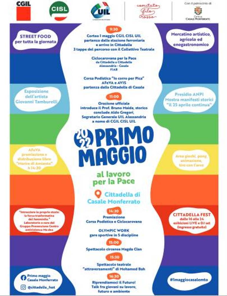 La festa provinciale dei lavoratori organizzata da CGIL, CISL e UIL Alessandria si terrà quest’anno a Casale Monferrato. Cornice storica dell’intera giornata sarà la Cittadella.