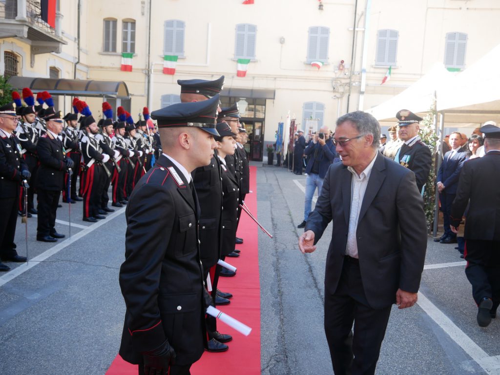In questa cornice, la sua presenza Signor Prefetto, unitamente a quella di S.E. reverendissima, dei sindaci e dei numerosissimi rappresentanti delle espressioni più significative della società civile e imprenditoriale rappresentano per noi una importante testimonianza di attenzione e consenso. Un sentimento che ricambiamo con pari intensità. Ne siamo onorati, felici e riconoscenti e in virtù della vostra continua vicinanza cercheremo sempre di essere all’altezza delle aspettative di sicurezza di questo straordinario territorio e della sua meravigliosa gente. I risultati degli sforzi sono a tutti noti; le Forze di polizia di questa Provincia operano di comune intesa, in una collaborazione stretta e disinteressata, rispondendo ad un consolidato modello di coordinamento senza riscontro, ove le diverse professionalità e competenze si fondono completandosi a vicenda. Per questo consentitemi di rivolgere il mio affettuoso saluto al Questore Dott. Maurizio Di DOMENICO e al Comandante Provinciale della Guardia di Finanza, Colonnello Ciro NATALE, con i quali condivido le tensioni quotidiane che derivano dal desiderio, ancor prima che dal compito, di rendere sempre più sicuro il nostro territorio. Un risultato che è tangibile grazie anche all’accorta guida nell’attività di Polizia Giudiziaria del Procuratore della Repubblica, Dr Pierluigi Pianta, e all’incensante impegno dei magistrati del Tribunale, sapientemente coordinati da loro Presidente Dott.ssa Michela Tamagnone. Un saluto riconoscente infine va, alle rappresentanze delle Associazioni combattentistiche e d’Arma che con i loro labari affiancano i commilitoni dell’Associazione Nazionale Carabinieri in congedo, testimoni delle tradizioni che hanno reso l’Arma “Benemerita”, a dimostrazione dell’immutabile fedeltà e dell’abnegazione silenziosa.