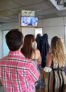Mentre il Dirigente veniva intervistato, gli allievi e le allieve, divisi in due gruppi, si sono esercitati col il microfono cercando di farselo amico in vista dell’imminente diretta che li avrebbe convolti dopo pranzo.