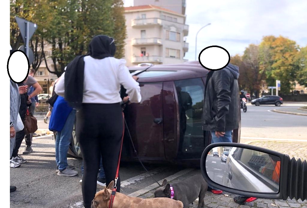 E’ stata una mancata precedenza (come riferiscono fonti attendibili) a procurare l’impatto tra la vettura familiare grigia che si vede nella foto di apertura e l’utilitaria di colore rosso scuro, quest’ultima rovesciata su una fiancata.