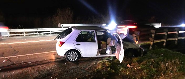 L’utilitaria ha terminato la propria corsa contro un guard rail, restando incastrata sul montante: al momento si attendono i Vigili del Fuoco per liberare la carreggiata.