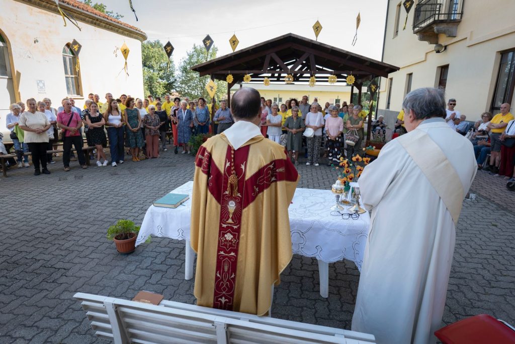 Dopo la liturgia, molto partecipata, si è tenuto il rinfresco organizzato come ogni anno dalla Mariuccia dal “Peca” che, dopo un lavoro durato quasi un anno, ha realizzato centrini e fiori all’uncinetto che hanno abbellito la festa.