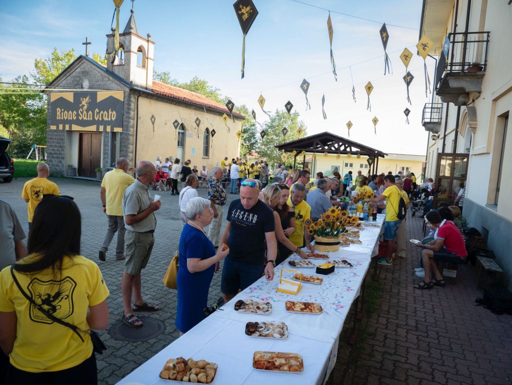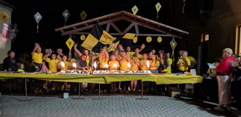 Ringraziamo gli abitanti del rione per aver portato dolci e salati (famose le torte del Fabrizio) e il gruppo “Maie giaune” che ha fatto il “lavoro duro”.