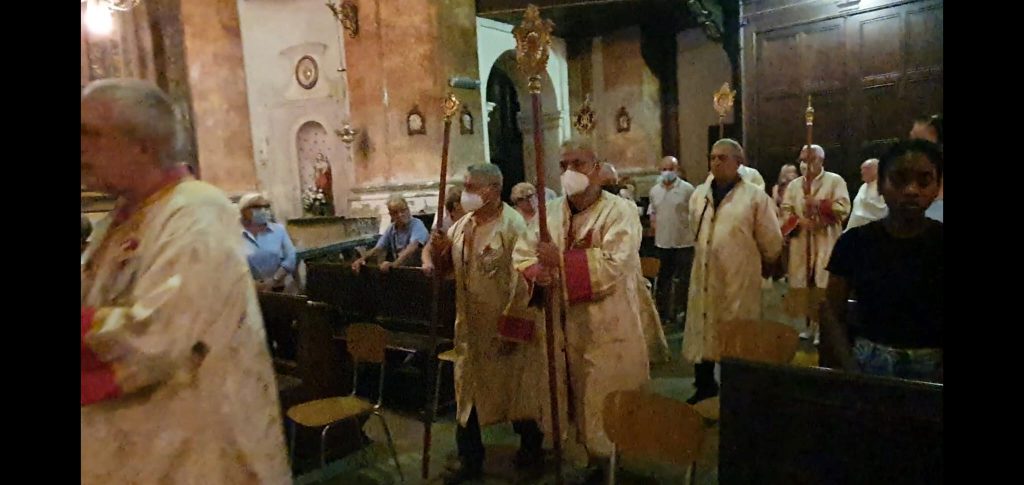 Prima della benedizione finale il Priore Gianni Gennaro, ha manifestato la sua gioia per la ripresa di questa bella tradizione dopo tre anni di sospensione, per il motivo che ormai tutti ben conosciamo e ha ringraziato i presenti, il Sindaco e il nuovo confratello Piero per essersi preso l’impegno di tenere la chiesa a onore del mondo. È seguita la lode a San Lorenzo, che i presenti hanno potuto leggere nei foglietti disposti sui banchi, dopo la benedizione finale, ha avuto luogo la benedizione dell’uva di San Lorenzo e di tutti coloro che la porteranno a casa.