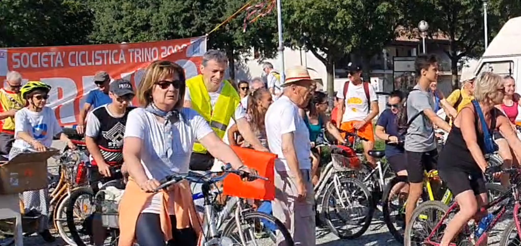Il festoso sciame di velocipedi, circa 100 partecipanti nonostante il caldo, accompagnato dal Servizio di Sicurezza, Ambulanza e Polizia Municipale dentro i confini di Trino, si è snodato per i bellissimi Borghi della Bassa vercellese immersi nel verde e nelle risaie, percorsi che offrivano una vista incantevole raggiungendo, Robella, Torrione, la suggestiva Saletta con le sue storie esoteriche e i suoi misteri, Costanzana, sino giungere a Tricerro, dove, la Famija Tricereisa ha ospitato tutti i ciclisti e ha dato loro ristoro.