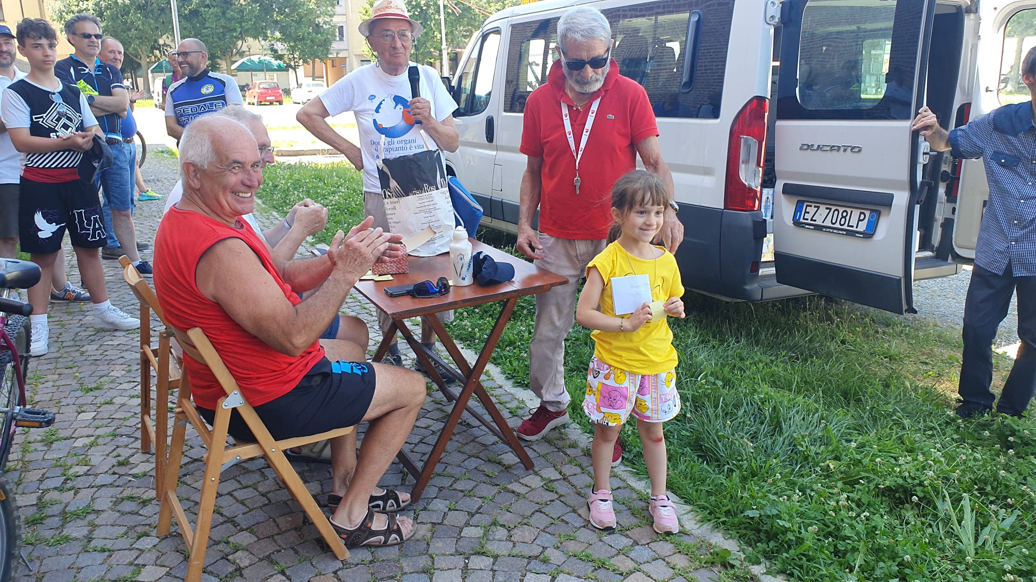 Al rientro a Trino, in Piazza Garibaldi, ha tenuto con il fiato in sospeso, l’estrazione dei premi tra i partecipanti, è stato premiato il partecipante più anziano e la partecipante più giovane, la piccola Fabiana Ferrarotti. Dopo l’estrazione di vari premi offerti dai generosissimi commercianti trinesi, è stato estratto il biglietto della bicicletta, il fortunato è stato un ragazzino, uno dei gemelli Rosso e precisamente Stefano che, tutto soddisfatto e sorridente, si è fatto subito un bel giro nella piazza per provare il mezzo.