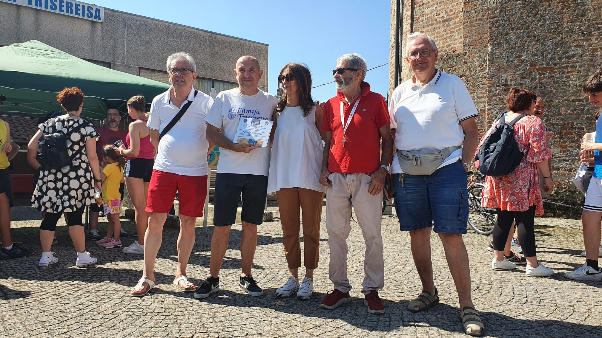 A salutare i partecipanti è intervenuta la Vice Sindaco Elisabetta Borgia, già presente anche alla partenza da Trino che, in segno di riconoscenza, ha consegnato una targa al Presidente della Famija Tricereisa, in memoria della giornata.