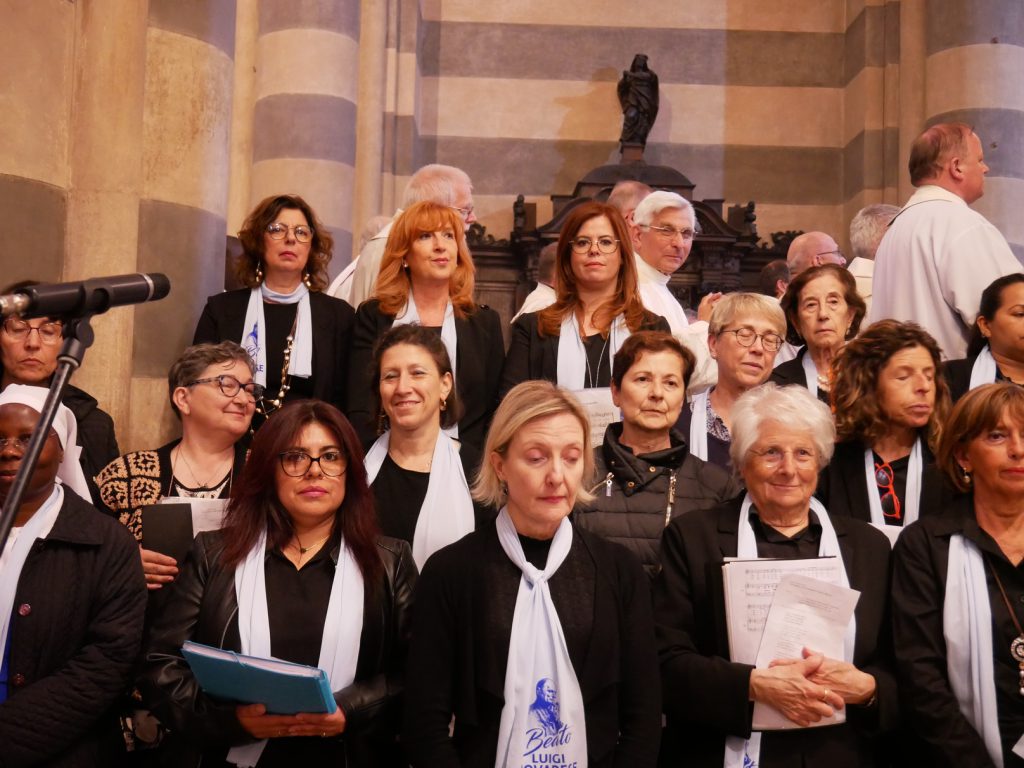 La Liturgia (ed anche questo è offerto nel video) è stata mirabilmente accompagnata dai canti della Corale allestita tra le Parrocchie urbane della città di Casale Monferrato, diretta dal Maestro Signora Annamaria Figazzolo.