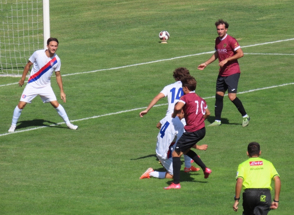 Il derby si accende dopo 3 minuti con un’azione insistita dei valsesiani; la sfera arriva a Tampellini che costringe Mersini a salvarsi di piede.