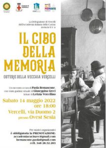 La delegata Paola Bernascone Cappi, con visita guidata virtuale di Giuseppina Greci e letture di Letizia Vercellino, parlerà di “Il cibo della memoria: osterie della vecchia Vercelli“.