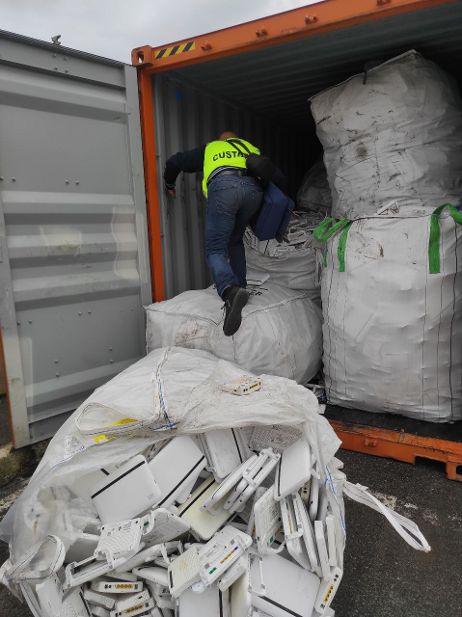 La merce, costituita da 37 tonnellate di modem/routers dismessi e da rottami di servers per la trasmissione dati (inclusi involucri di plastica, moduli di memoria, schede elettroniche e piccole batterie) era accompagnata da formulari di identificazione dei rifiuti compilati in modo non veritiero.