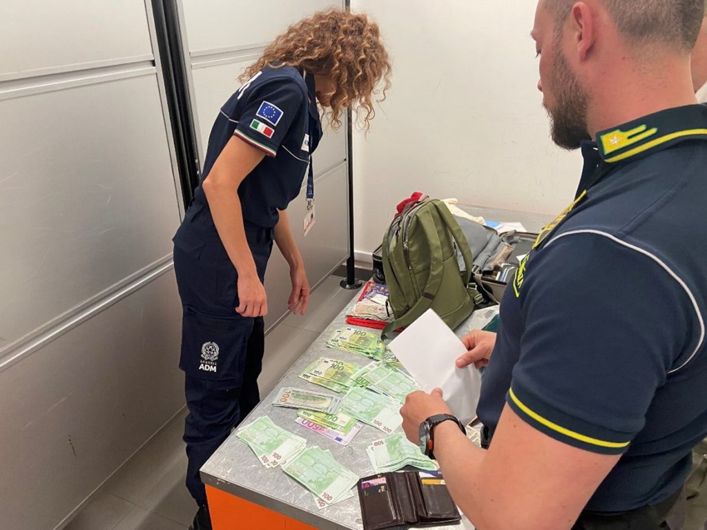 Il sequestro probatorio di iniziativa di oltre 10mila euro in contanti e di 4 assegni in bianco per l’ipotesi di riciclaggio a carico di un passeggero sbarcato da un volo proveniente dal Canada va ad aggiungersi alle 35 violazioni valutarie contestate nell’ultimo mese, 144 da inizio anno, per più di 2,6 milioni di euro di valuta intercettata e 37mila euro di sanzioni applicate.