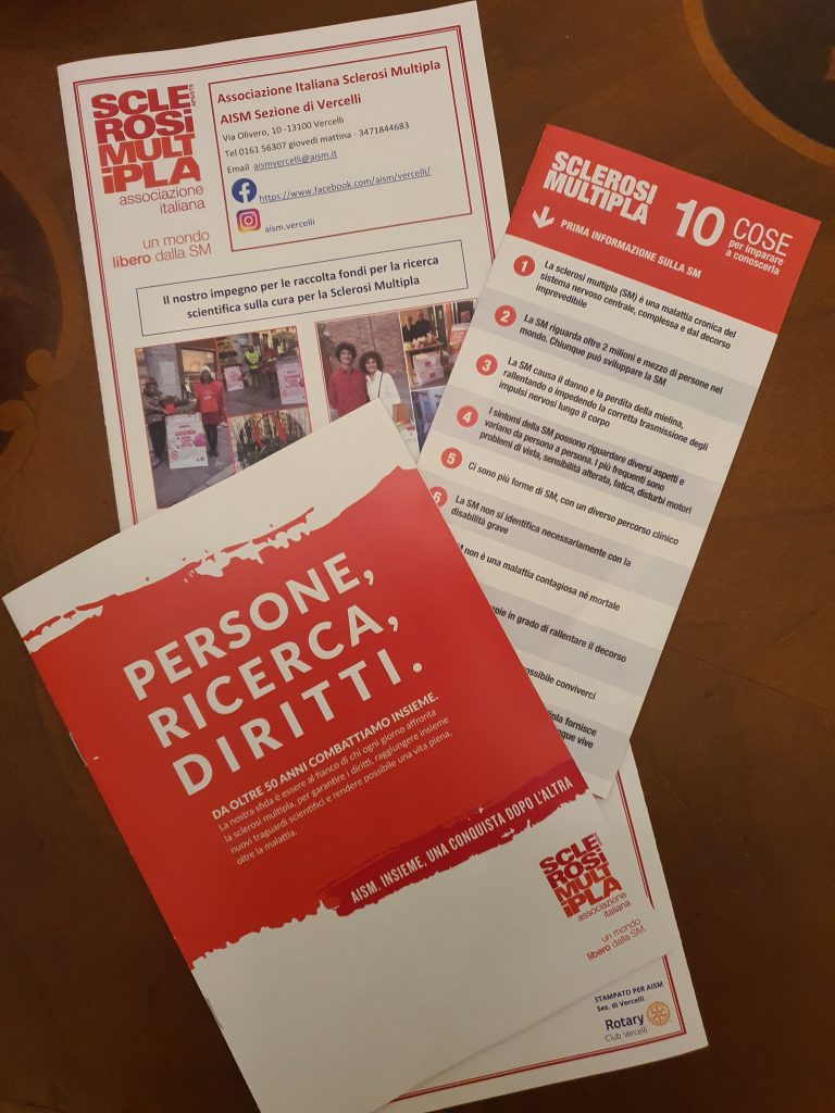 La donazione che AISM Vercelli ha ricevuto dal Rotary Club Vercelli sarà destinata a finanziare un trimestre dell’attività di benessere Tai Chi adattato, dedicata ai Soci con Sclerosi Multipla. AISM ha inoltre ottenuto dal Rotary la riproduzione di un cospicuo numero di copie di ben tre tipologie di preziosi opuscoli informativi, destinati alle persone con SM e a loro familiari e caregiver, gli opuscoli saranno divulgati presso i centri clinici e in tutte le occasioni pubbliche di informazione e sensibilizzazione sulla SM.