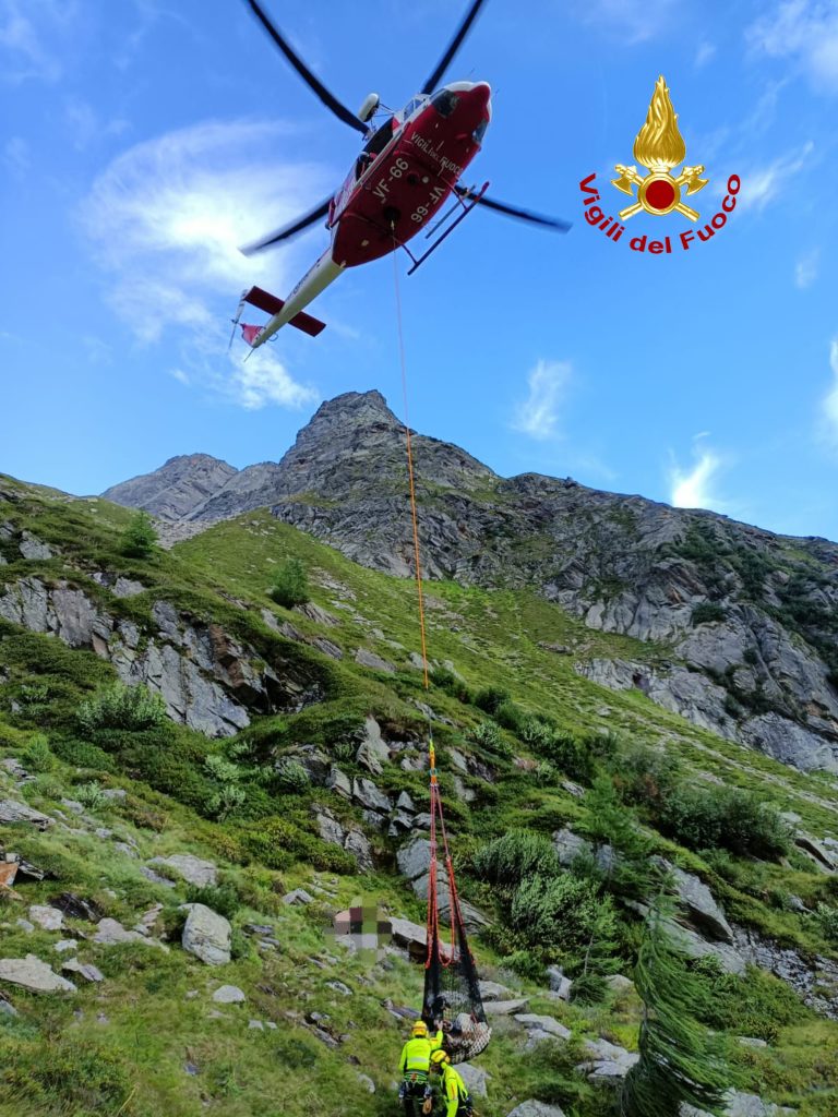 Nella giornata di ieri, martedì 3 settembre intorno alle ore 17:30 i Vigili del Fuoco del distaccamento volontario di Alagna, insieme al nucleo elicotteri di Torino, sono intervenuti per il soccorso e recupero di un bovino rimasto ferito ad una zampa durante il pascolo in località Alpe Jazza Superiore nel comune di Alagna ad una quota di 2150 metri.