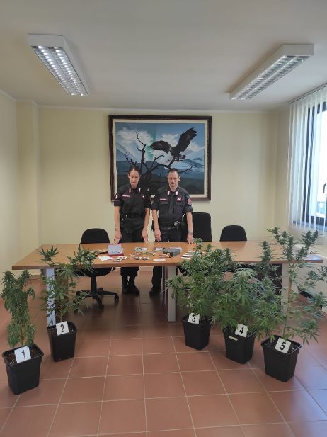 Nell’immediatezza i militari hanno proceduto a contattare il proprietario dell’abitazione e dell’attiguo garage ed a compiere in via d’urgenza la perquisizione dei predetti locali, rinvenendo, oltre alle suddette piante, un pezzo di hashish del peso di 4 grammi, sementi di canapa, oltre ad altro materiale utilizzato per pesare e confezionare sostanza stupefacente.