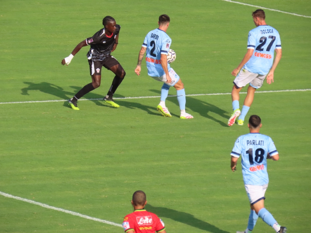 La Pro, al 19’, passa in vantaggio con un’azione fantastica. Akpa Akpro di prima appoggia a Rutigliano che si libera con un numero dell’avversario. Il numero 10 ci prova a giro trovando la parata di Baldi che nulla può sul colpo vincente di A. Sow.