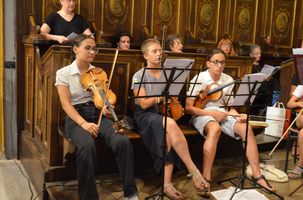 Infine, la presenza veramente gradita di alcuni giovani e talentuosi studenti di strumenti ad arco, che partecipano alle Scuole con metodo Suzuki, diretti dal Maestro Antonio Mosca.