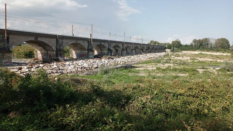 Allarme al fiume Sesia nelle immediate vicinanze del ponte ferroviario a Vercelli.