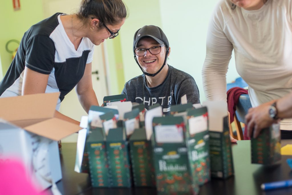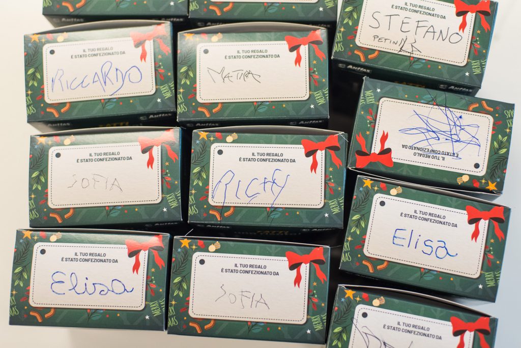 Ogni scatola prevede, poi, un riquadro bianco in cui i ragazzi e le ragazze Anffas possono inserire il proprio nome, dopo aver montato e confezionato il pacco.