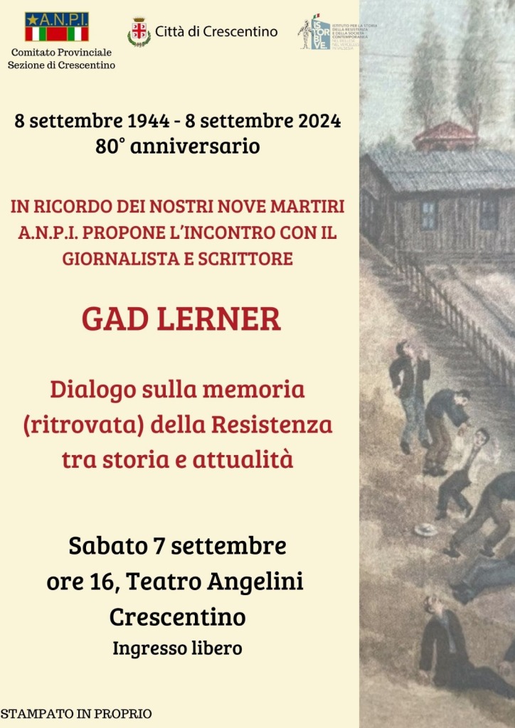 “Per commemorare degnamente Arena, Castagnone, Graziano, Lento, Marsili, Petazzi, Pigino, Rondano, Schiavello – sottolinea la presidente Marilena Vittone – la nostra sezione ha invitato l’illustre giornalista e scrittore Gad Lerner, che ha lavorato per tv e testate giornalistiche. La sua voce critica da decenni affronta temi di attualità e storici. Sicuramente, sabato 7 settembre ci offrirà altri spunti di riflessione”.