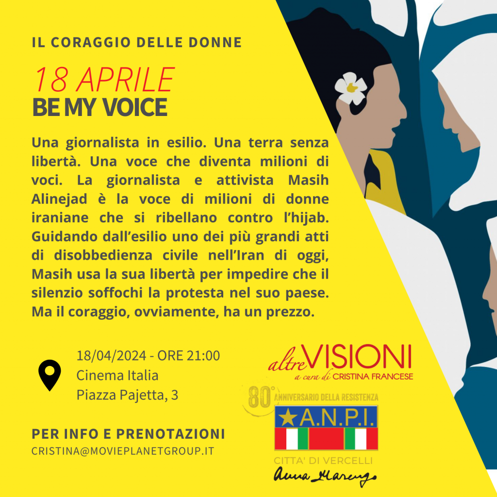 Infine, giovedì 18/04, sempre alle 21, si assisterà al documentario “Be my voice” diretto da Nahid Persson.