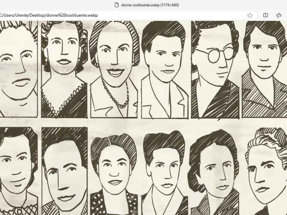 I volti delle 21 «madri costituenti» affiancati da cenni biografici si alternano ad articoli della Costituzione per evidenziare la rilevanza del contributo femminile nella stesura del testo cardine della Repubblica italiana.