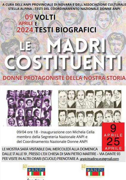Domani martedì 9 aprile alle ore 18, presso la ex chiesa di San Pietro Martire a Vercelli, verrà inaugurata la mostra dal titolo “Le Madri Costituenti”.