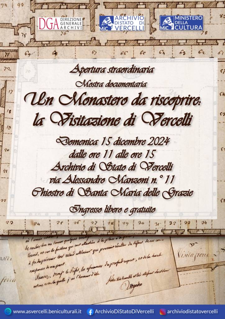 13/12/202413/12/2024 Vercelli Città ARCHIVIO DI STATO DI VERCELLI - Apertura straordinaria per la Mostra documentaria “Un Monastero da riscoprire: la Visitazione di Vercelli” La mostra sarà allestita nel Chiostro di Santa Maria delle Grazie
