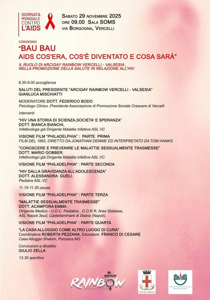 25/11/202525/11/2025 Valsesia e Valsessera, Vercelli Città ARCIGAY RAINBOW VERCELLI - VALSESIA - Convegno “Bau Bau - AIDS cos'era, cos'è diventato e cosa sarà” Un’importante occasione di confronto sul tema delle MST e AIDS/HIV, con la partecipazione di relatori ed esperti del settore