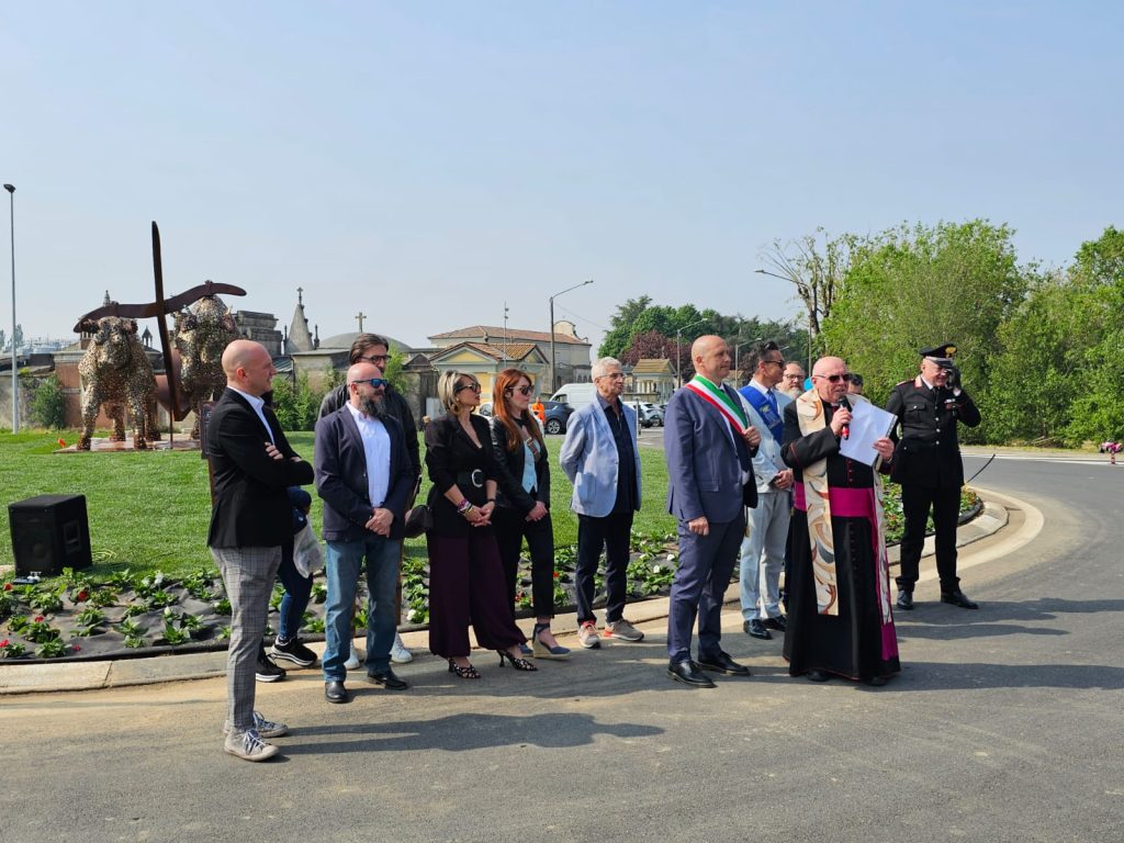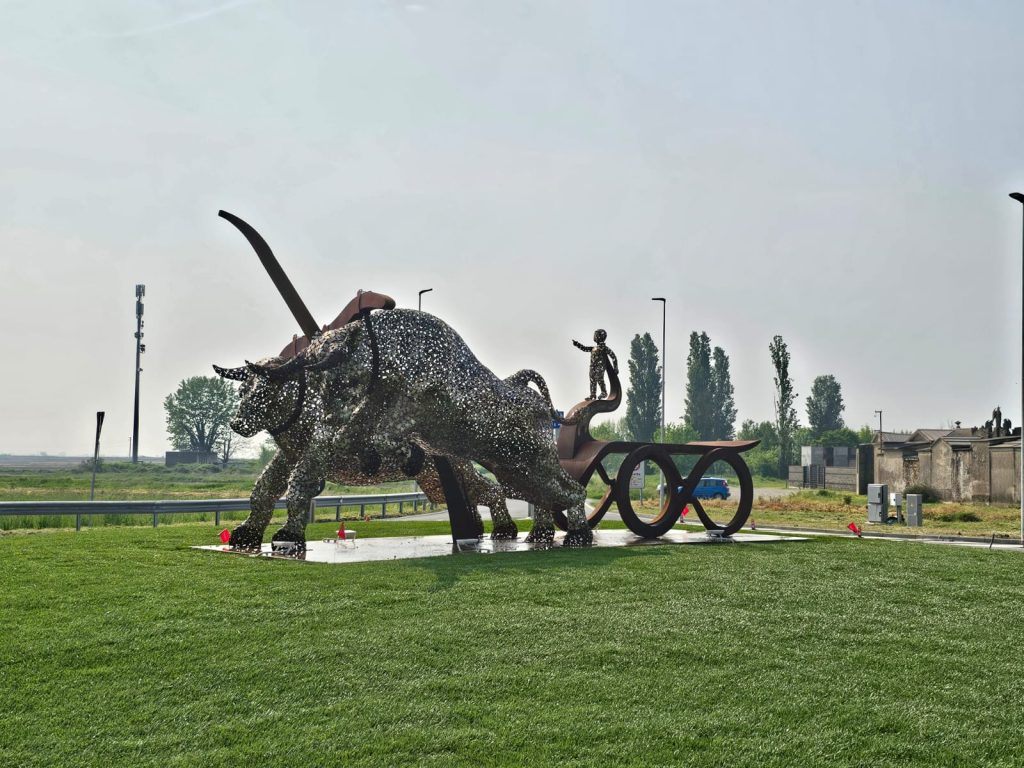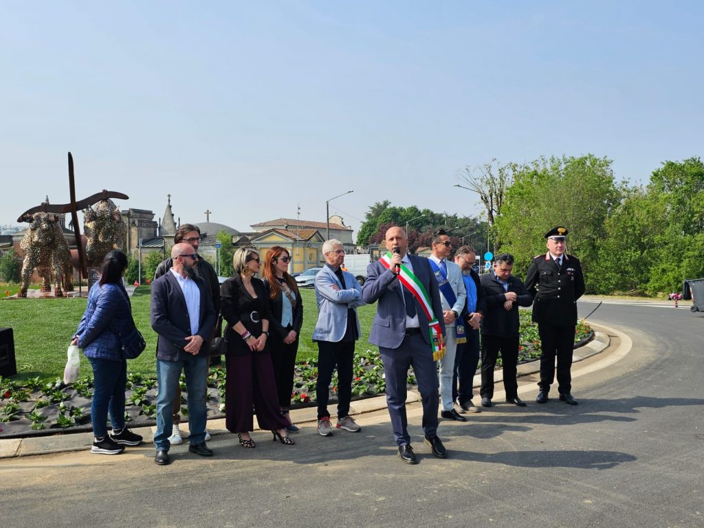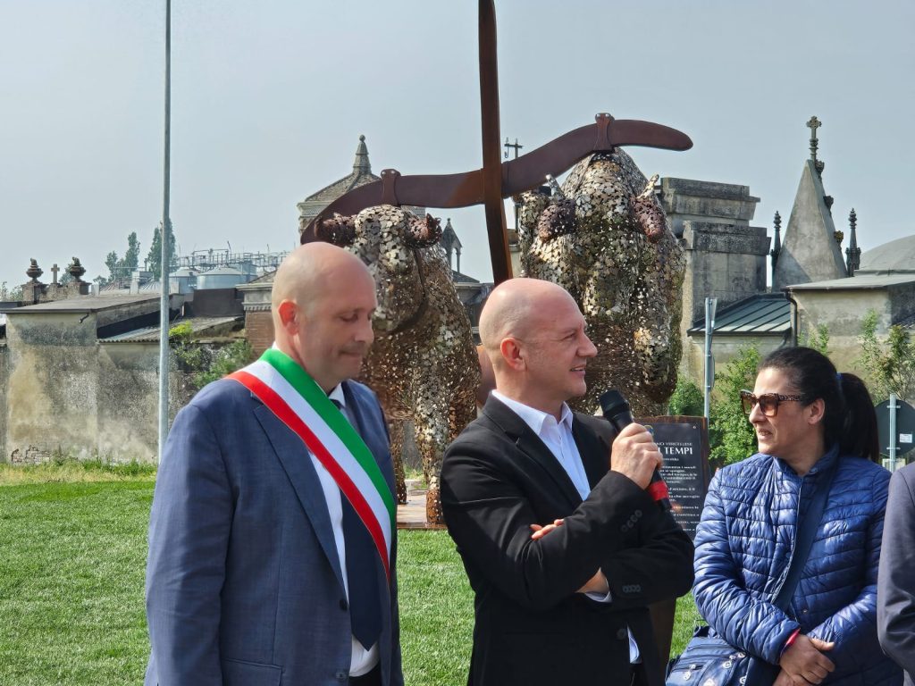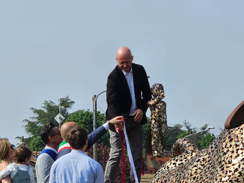 Posizionato strategicamente al centro della nuova rotatoria lungo la SP5, in Viale Garibaldi, il monumento “Corsa dei Tempi” è stato svelato alla comunità alla presenza delle autorità e dell’artista che lo ha realizzato, lo scultore Ruben Bertoldo.