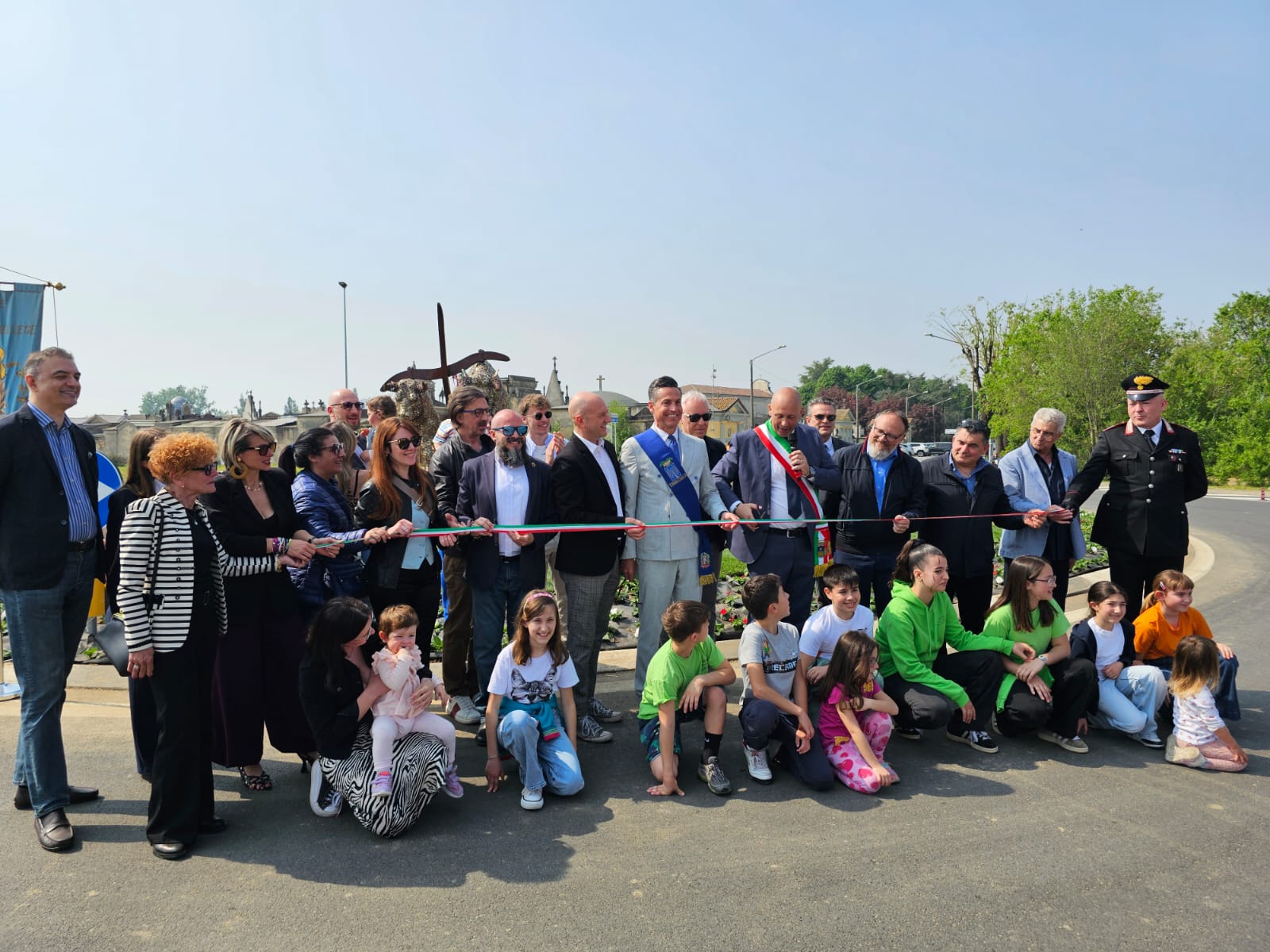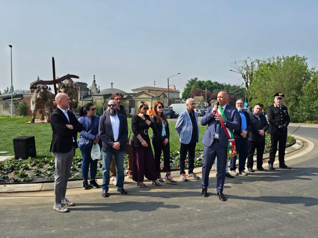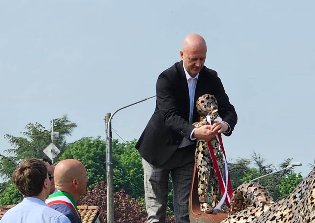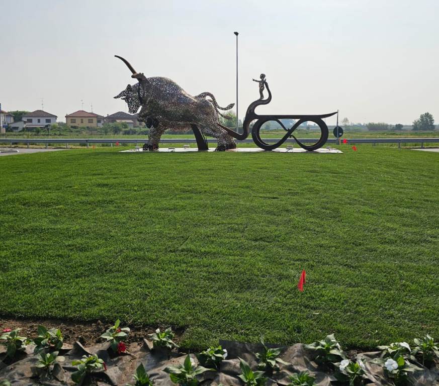 Posizionato strategicamente al centro della nuova rotatoria lungo la SP5, in Viale Garibaldi, il monumento “Corsa dei Tempi” è stato svelato alla comunità alla presenza delle autorità e dell’artista che lo ha realizzato, lo scultore Ruben Bertoldo.