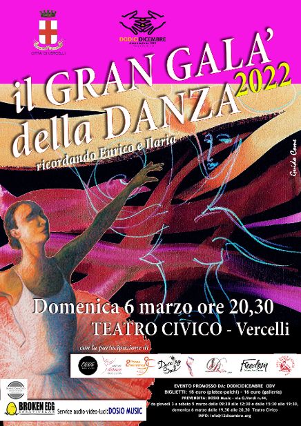 L’Associazione 12Dicembre ODV organizza il “Gran Galà della Danza 2022” che si terrà domenica 6 marzo 2022 alle ore 20.30 presso il Teatro Civico di Vercelli.