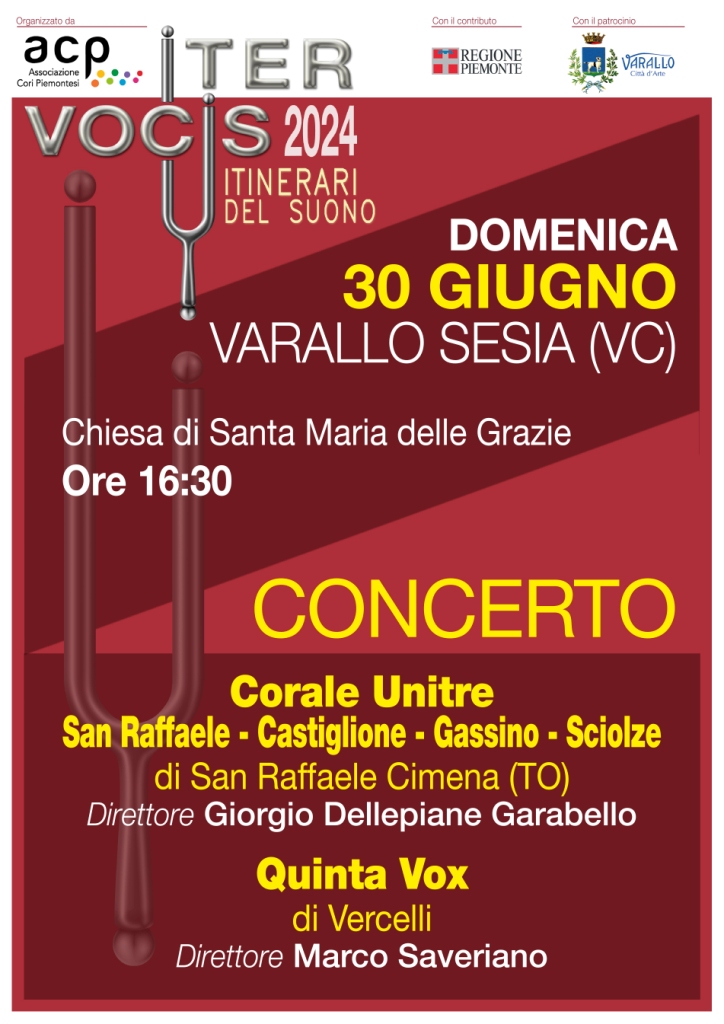 L’Associazione Cori Piemontesi indice ed organizza anche per l’anno 2024 il percorso concertistico “ITER VOCIS”, che mette in rete i territori della Regione in un cartellone unico organizzato dai singoli Consiglieri Provinciali.