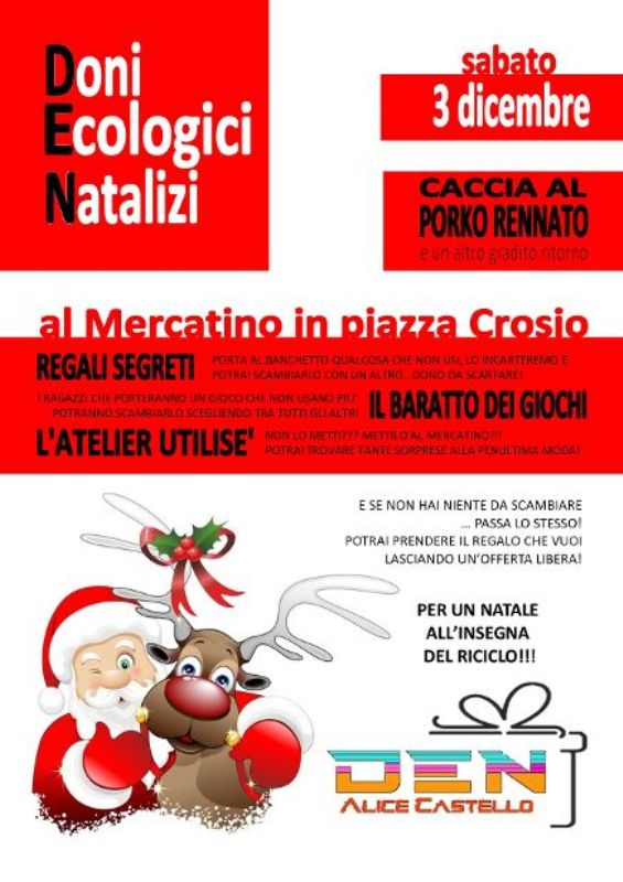 Il DEN, Gruppo Partecipazione Giovani del Comune di Alice Castello, animato dall’Associazione Itaca di Vercelli (www.itacavercelli.it) sarà presente con i propri banchetti sabato 3 dicembre al Mercatino Popolare organizzato in piazza Crosio.