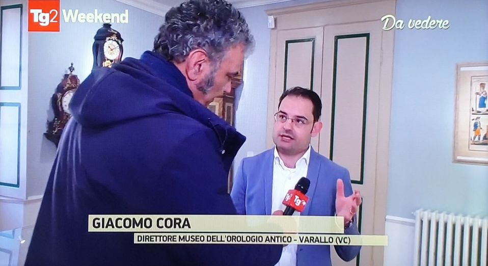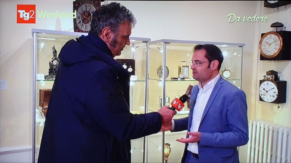 Il giornalista Massimiliano Clarizio con la sua troupe ha intervistato il direttore del museo Giacomo Cora che lo ha accompagnato in un viaggio nel mondo dell’orologeria dal 1500 al 1990.