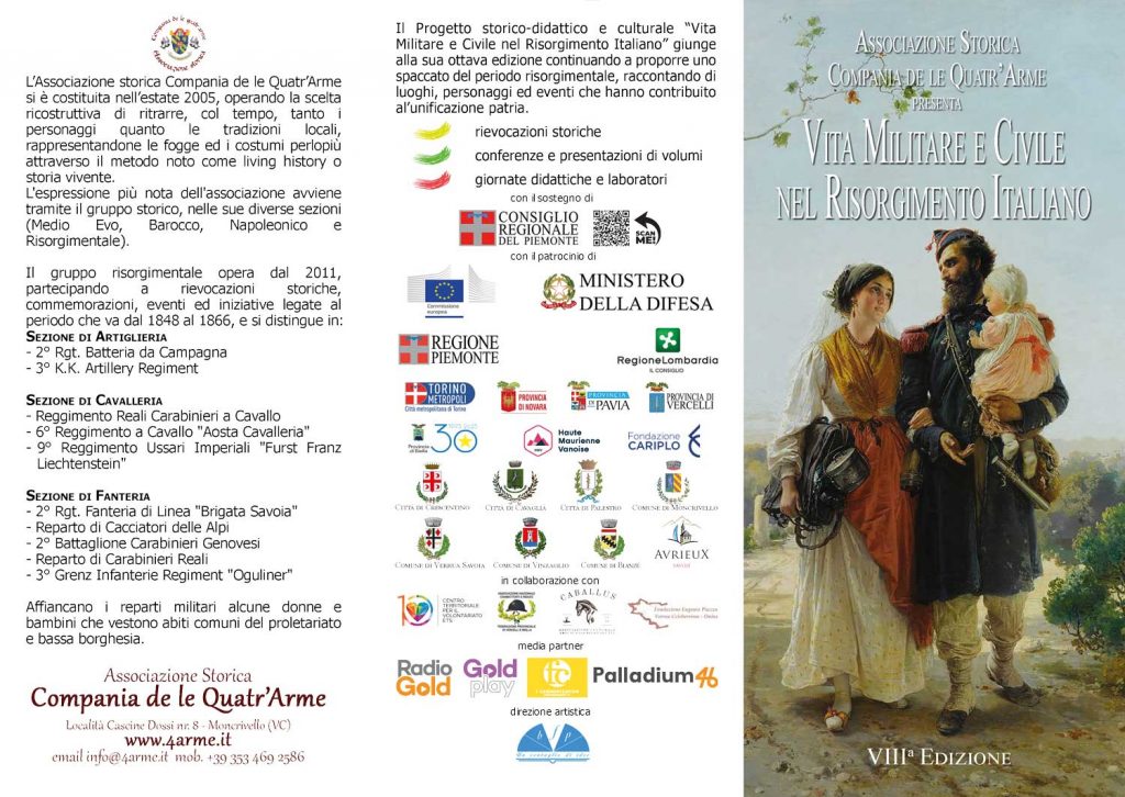 ASSOCIAZIONE STORICA COMPANIA DE LE QUATR’ARME O.D.V. DI MONCRIVELLO - Torna il progetto “Vita Militare e Civile nel Risorgimento Italiano”Il primo appuntamento, aperto al pubblico, sarà la rievocazione storica della battaglia di Palestro Società e Costume 10/05/202510/05/2025 Cigliano e Borgo d'Ale, Palestro e Alta Lomellina