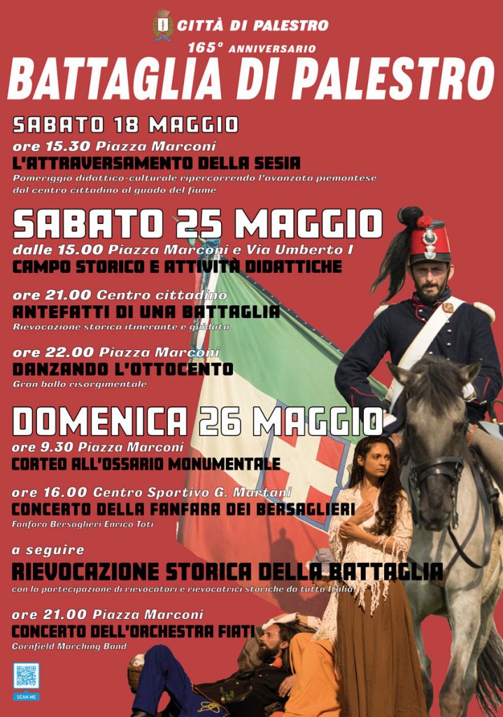 Prendono ufficialmente il via i festeggiamenti per commemorare il 165° Anniversario della Battaglia di Palestro, il maggior appuntamento con la storia della cittadina nel cuore della Lomellina pavese, ampiamente voluto dall’Amministrazione comunale di Palestro.