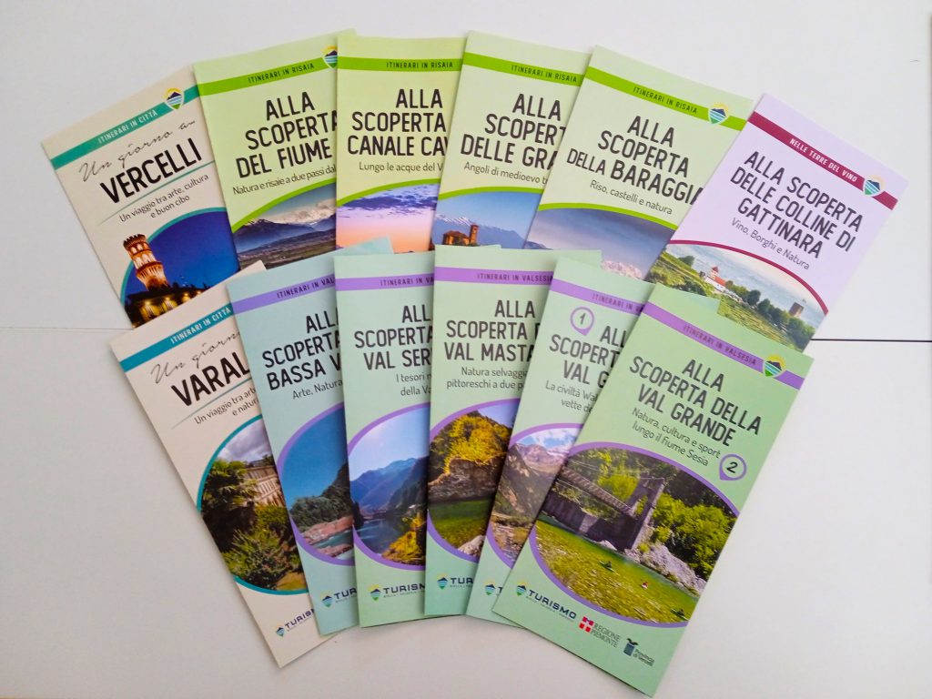 I dodici itinerari sono stati suddivisi in quattro collane: in Valsesia, nelle Terre del vino, in Risaia e in Città.