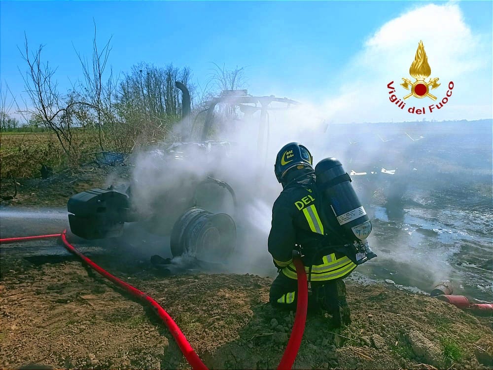 Le squadre dei Vigili del Fuoco del Comando di Vercelli e del distaccamento volontario di Santhià sono intervenute oggi, lunedì 3 aprile alle ore 14.45 a Balocco per l’incendio di un mezzo agricolo.