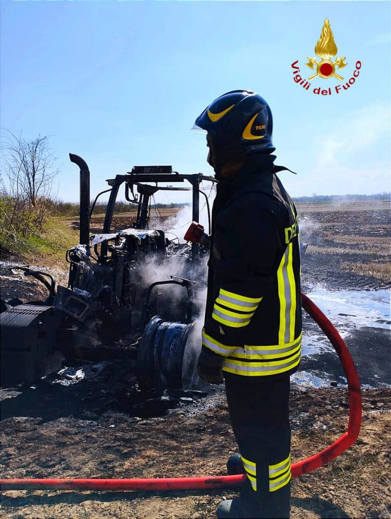Nonostante il proprietario avesse tentato di estinguere l’incendio utilizzando degli estintori, l’incendio ha completamente avvolto il mezzo estendendosi anche nella risaia dove stava operando il trattore.