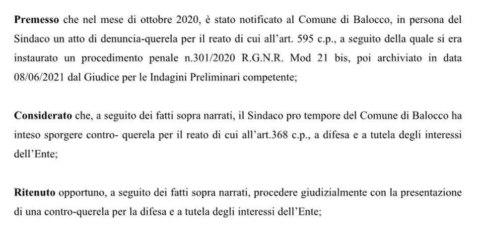 Sarà il Comune di Balocco a pagare la parcella (di euro 3.700 circa, oneri compresi) dell’Avvocato penalista, conseguente alla vicenda che il Vice Sindaco Antonella Maria Alessandra Benedetto così riassume: