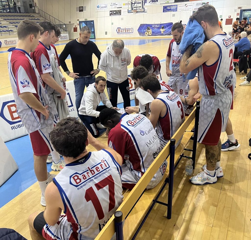 Gli ospiti, che hanno avuto il merito di non mollare mai, cercano di rientrare con grande intensità e vanno al ferro con Minella che poi in lunetta ne mette 1/1, Pavero va sicuro al ferro e Messina è preciso in lunetta (2/2).