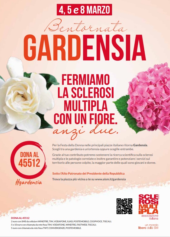 Ecco perché, promossa da AISM – Associazione Italiana Sclerosi Multipla – torna “Bentornata Gardensia”, che si svolge sotto l’Alto Patronato del Presidente della Repubblica.