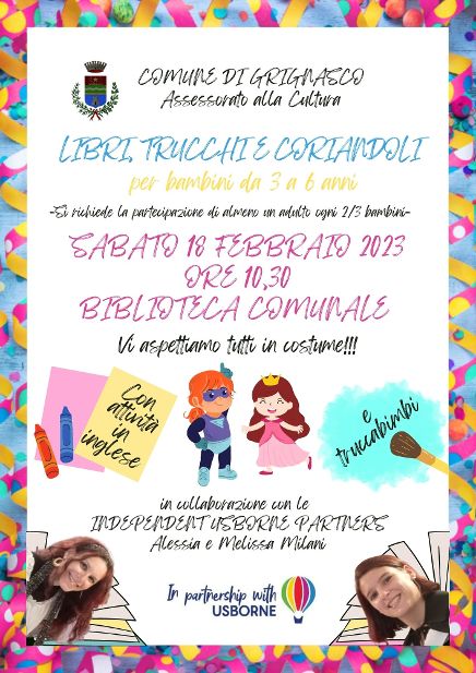Sabato 18 febbraio 2023 alle ore 10:30 ritorneranno nella Biblioteca di Grignasco le Indipendent Usborne Partners Alessia e Melissa Milani, già protagoniste del riuscito ciclo  di appuntamenti per bambini “Animals to the rescue”.