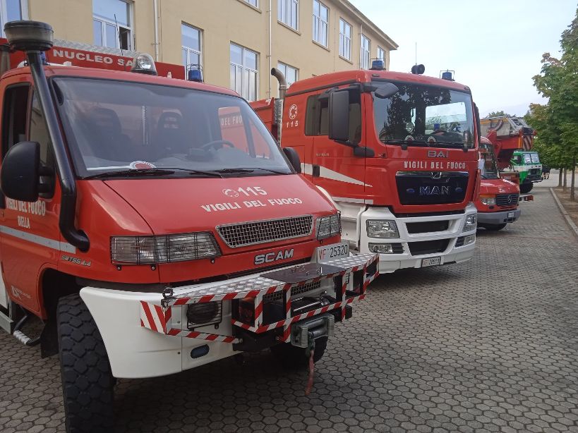 Terminati gli interventi degli esperti, gli studenti sono poi scesi nel cortile della scuola, dove hanno potuto osservare da vicino lo schieramento di mezzi e di attrezzature di Vigili del Fuoco, Protezione Civile e Croce Rossa.