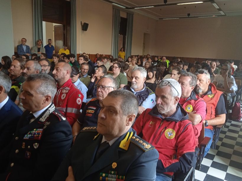 Al dott. Luca Del Negro, direttore della Protezione Civile del Piemonte, e ad altri tecnici del settore, il compito di rappresentare nel dettaglio gli interventi quotidianamente posti in essere per la riduzione del rischio; nel mezzo, i saluti del sindaco di Biella, Claudio Corradino.