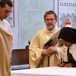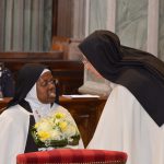 Terminata la consegna dei simboli, Sr. Agata ha ricevuto la ratifica dell’appartenenza all’Ordine Carmelitano da Sr. Valentina, Priora del Monastero di Carpineto Romano, da cui è gemmato quello di Biella.