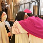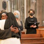 Particolarmente coinvolgente, all’offertorio, il canto in lingua swahili, “Beba mikononi”, che in breve si rivela richiamo irresistibile alla partecipazione per tanti dei presenti ed, in particolare, per alcune Consorelle appartenenti ad altre Congregazioni ed originarie della Tanzania, che hanno partecipato a questo momento di alta e gioiosa spiritualità.