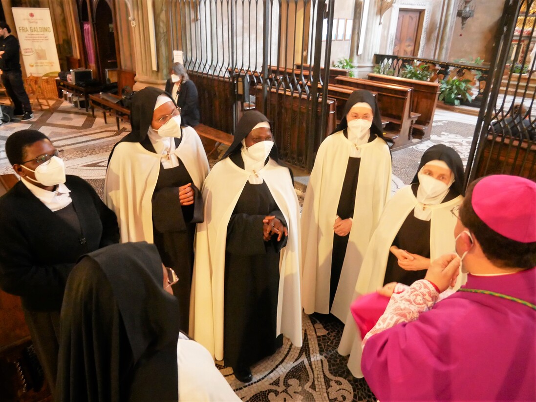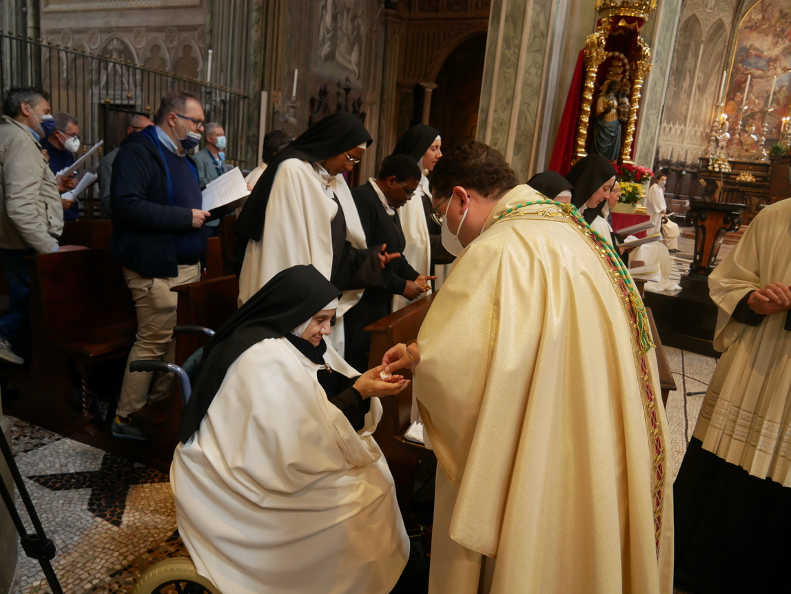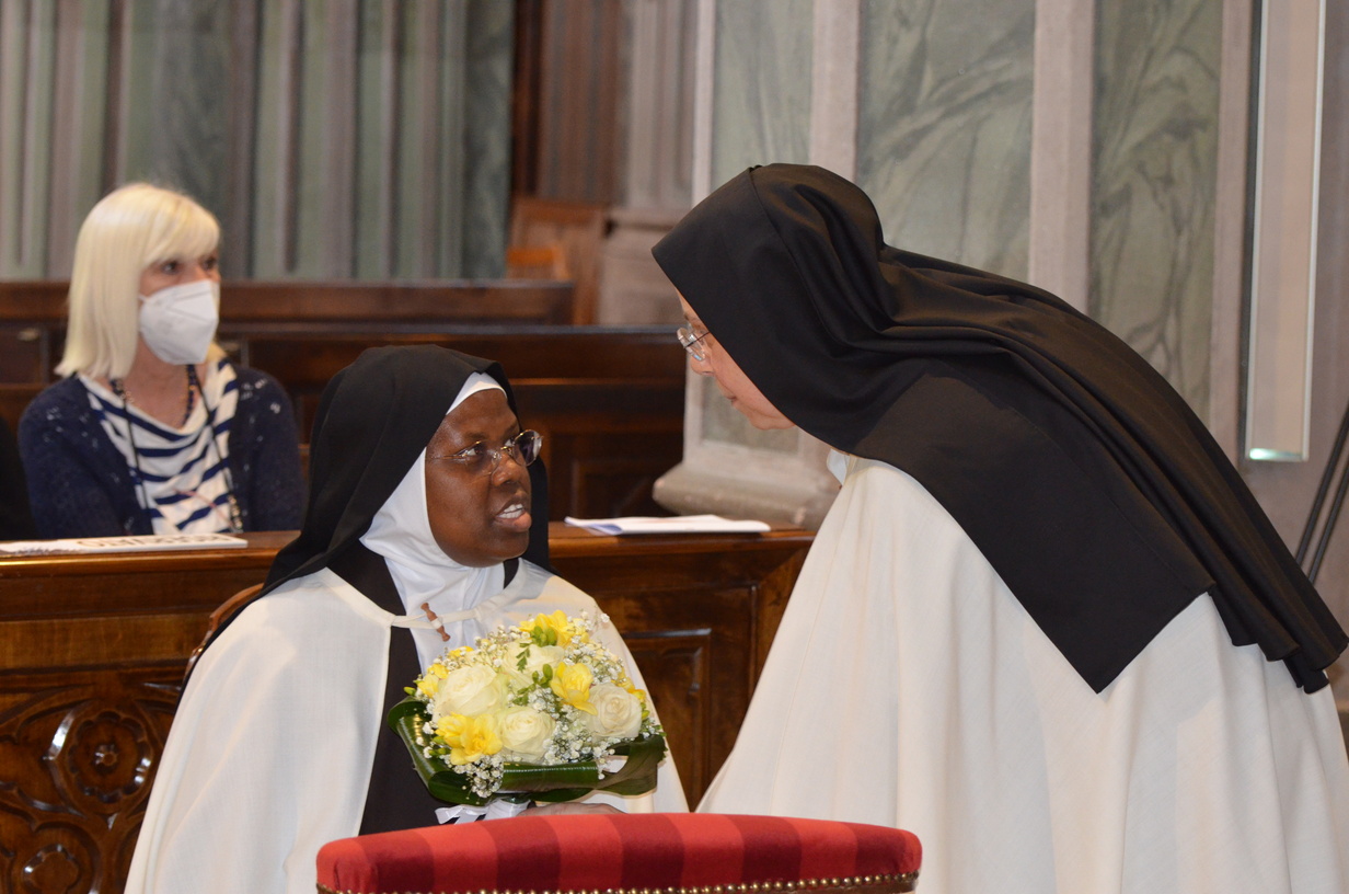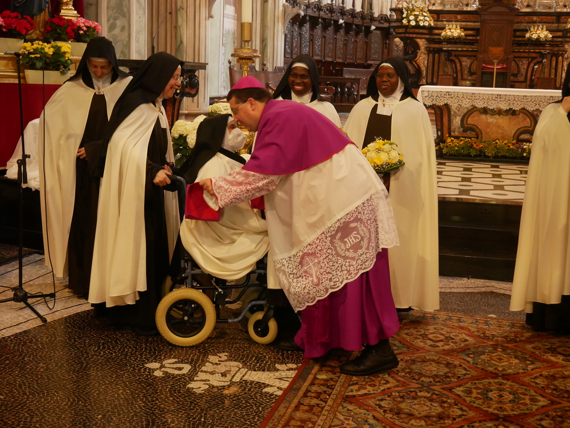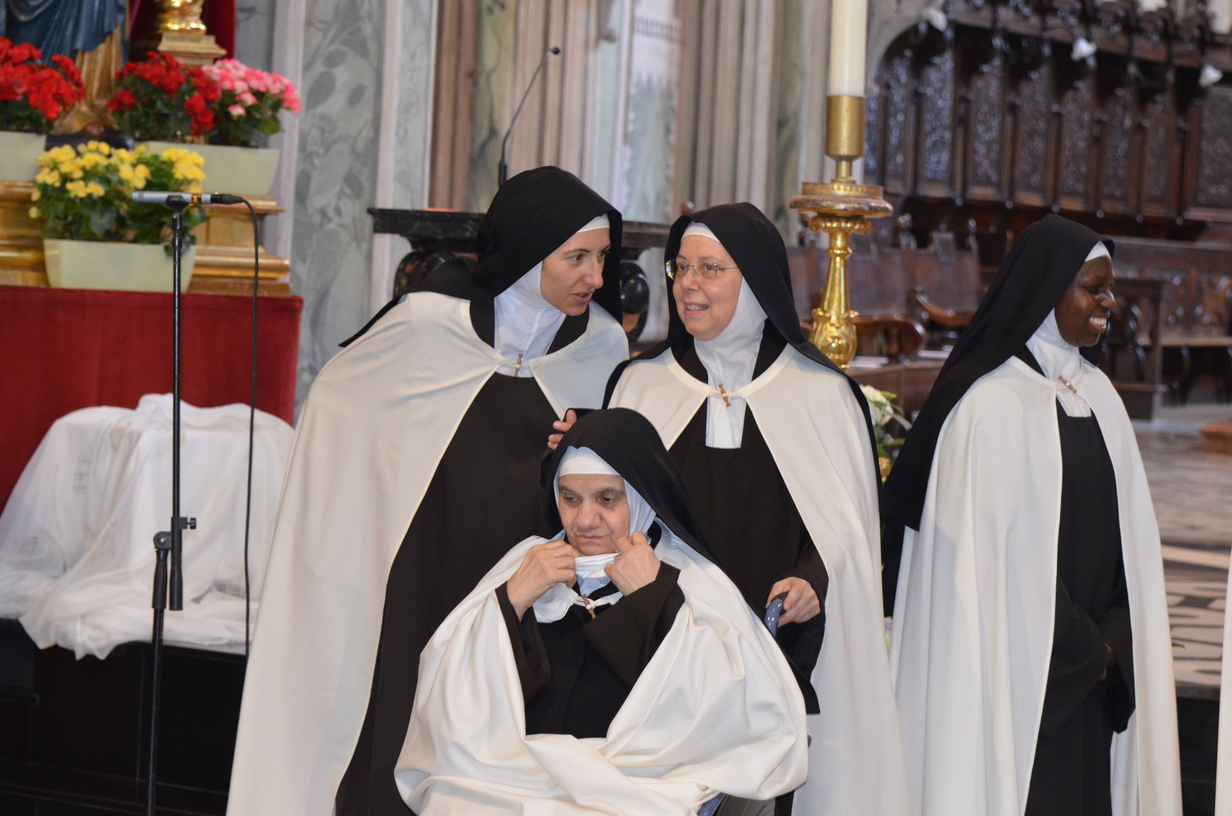 Terminata la consegna dei simboli, Sr. Agata ha ricevuto la ratifica dell’appartenenza all’Ordine Carmelitano da Sr. Valentina, Priora del Monastero di Carpineto Romano, da cui è gemmato quello di Biella.