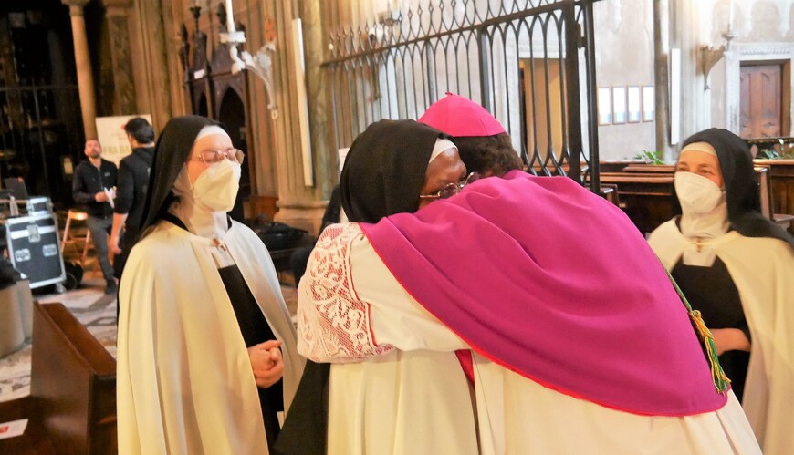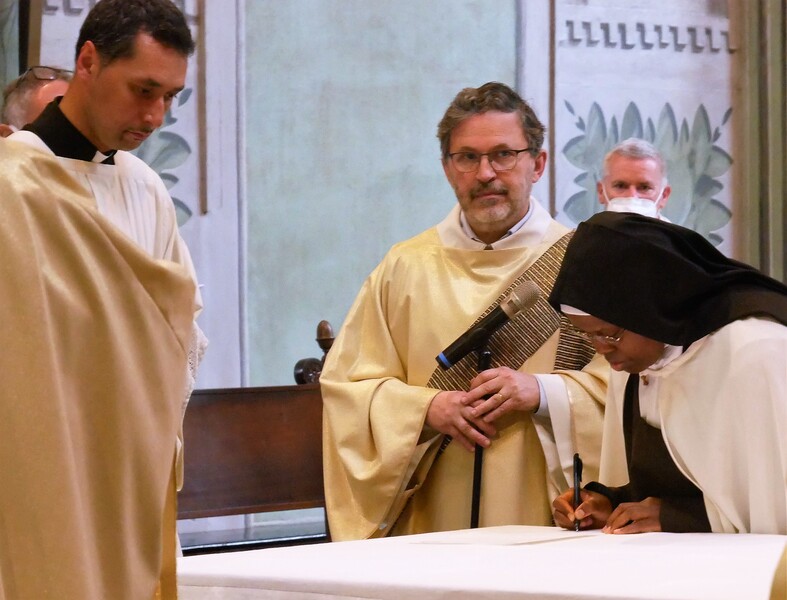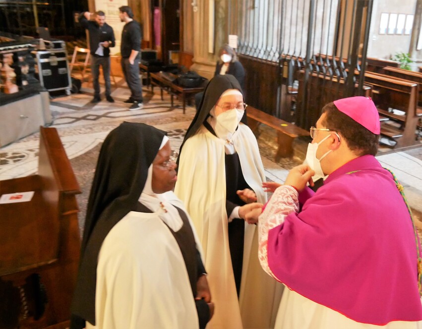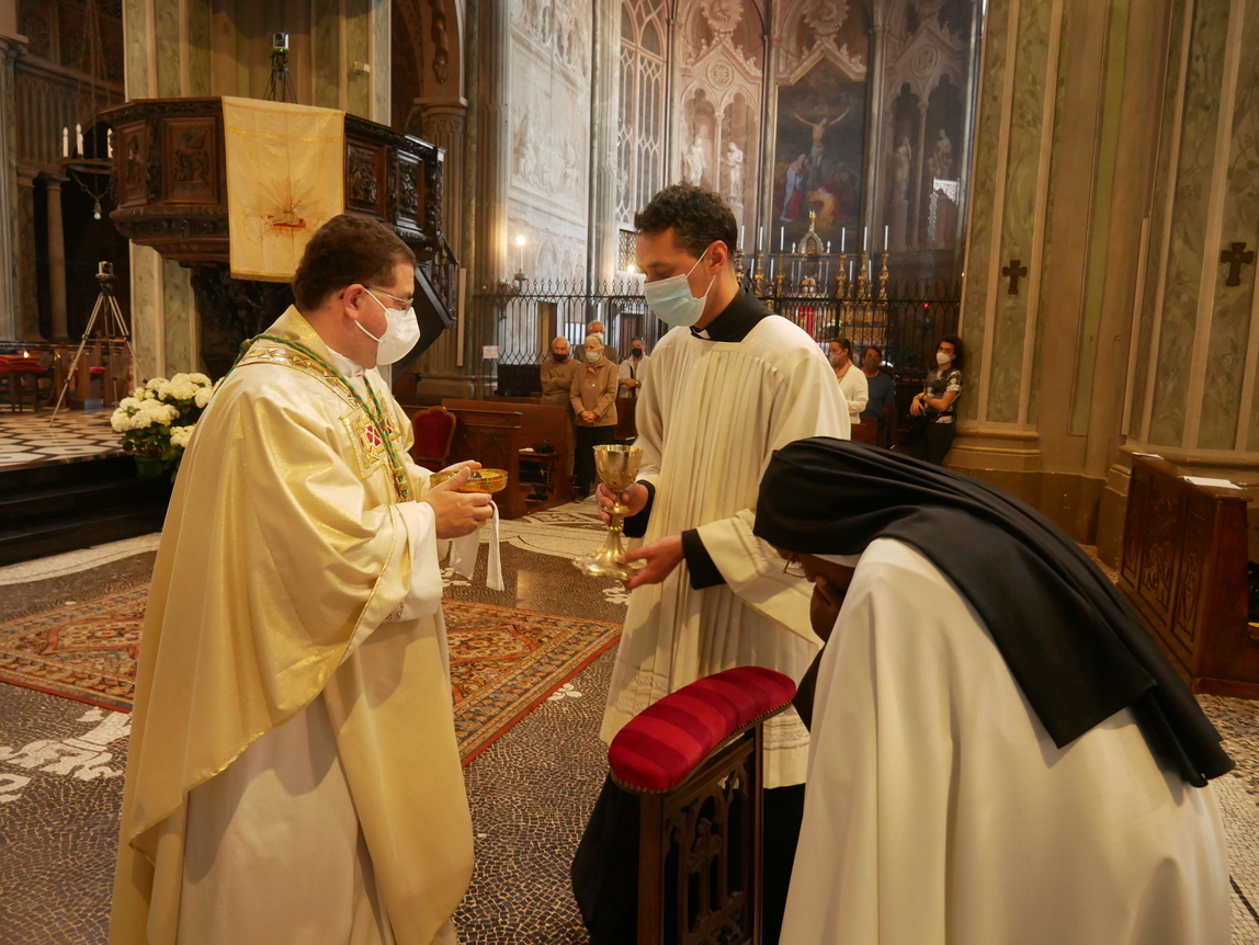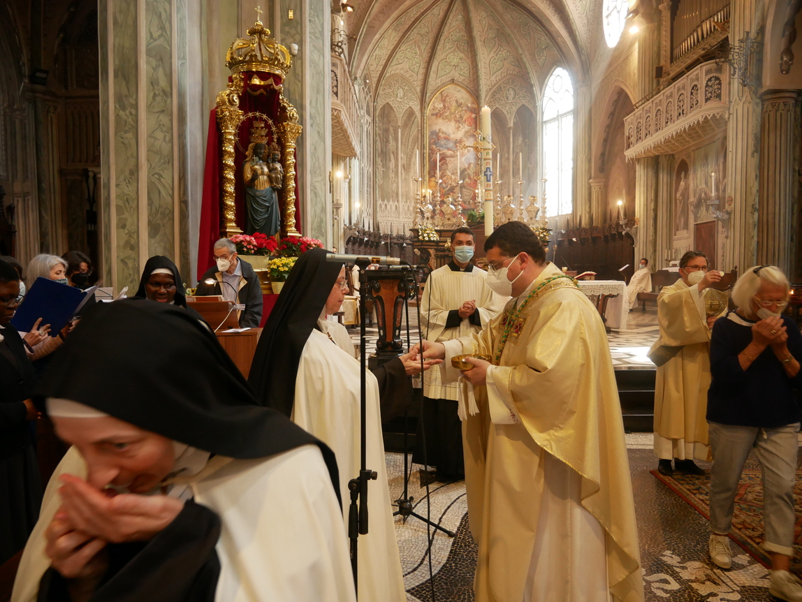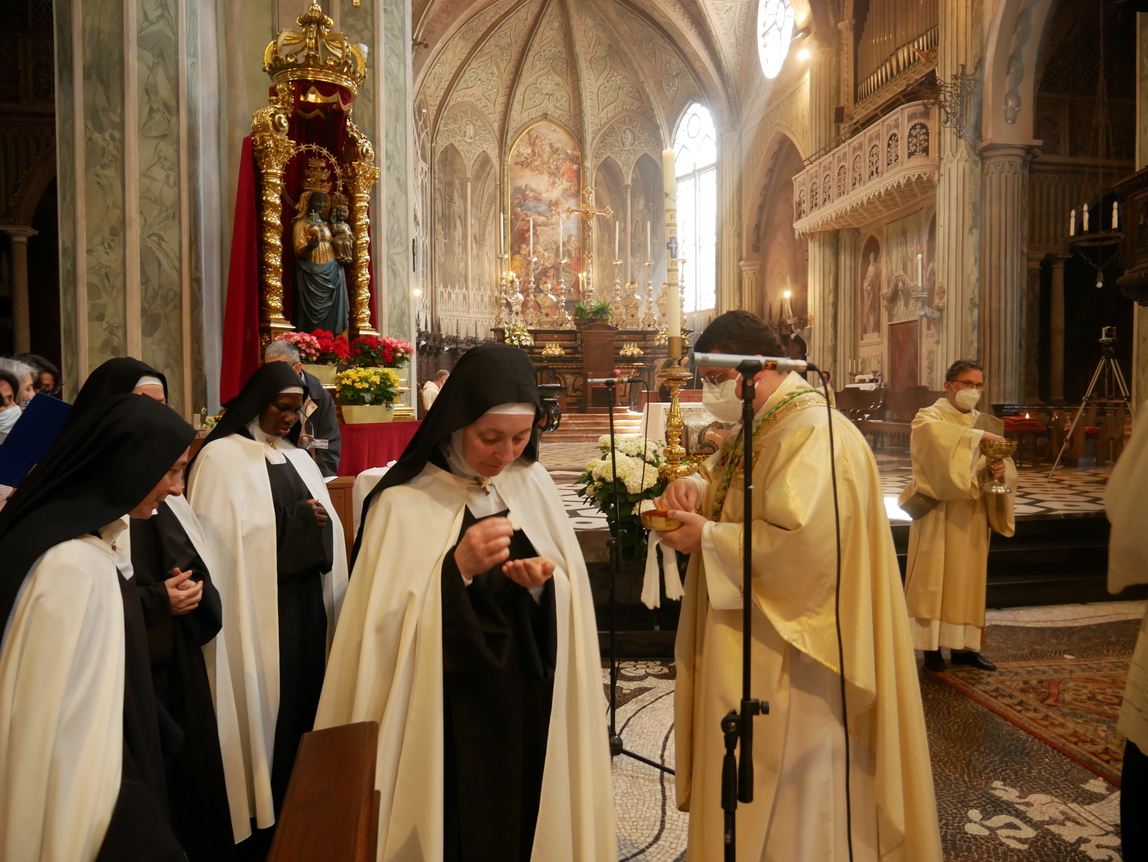 Terminata la consegna dei simboli, Sr. Agata ha ricevuto la ratifica dell’appartenenza all’Ordine Carmelitano da Sr. Valentina, Priora del Monastero di Carpineto Romano, da cui è gemmato quello di Biella.
